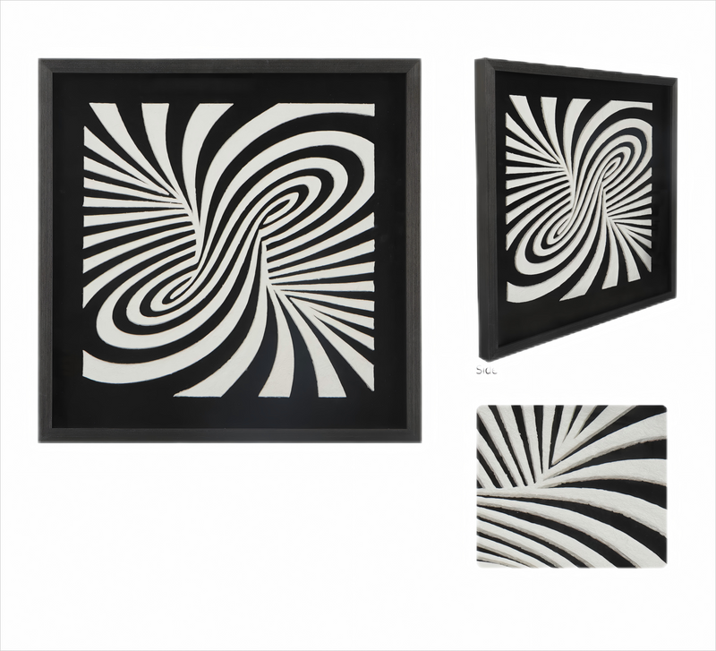 Add a touch of modernity to your space with the Black and White Optical Illusion Wall Art, made with paper pulp texture for an impressive and dynamic appearance. Measuring 24" x 24" (60 x 60 cm), this piece depicts a bold swirl pattern with an exciting 3D effect, which will draw the eye and mesmerize your guests. High contrast between black and white brings in the spirit of modernity, ensuring that this piece stays out from the ordinary, adding glamour to any interior.