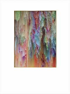 Different from ordinary painting on canvas,these art pieces look more unique and attractive as we creatively print the motifs on strained cotton thread,presenting an unique look with dimensional effect.This piece is painted on cotton thread in hues of greens,blue,pick,orange and pale purple,measuring 30" x 40" (75 x 100 cm), every threads with bold and bright color. It’s dimensional effect add visual interests