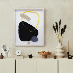 The material of coral fleece used in this boho designs help add a texture in your room and perfectly coordinated with your sofas,rugs and carpets to create a warm and cozy home.Showcasing abstract shapes, this art lends a boho look.What really makes this piece unique is its cotton material,perfectly matched with other decors in a boho interior. Shades of blue, black, and cream have been merged together in harmony to provide an effect of calmness and serenity. Rich in variation, the surface texture holds a tactile three-dimensional quality lent to the different sections of coral fleece. In sum, the piece evokes calmness and relaxation and is bound to add modern elegance to any room.