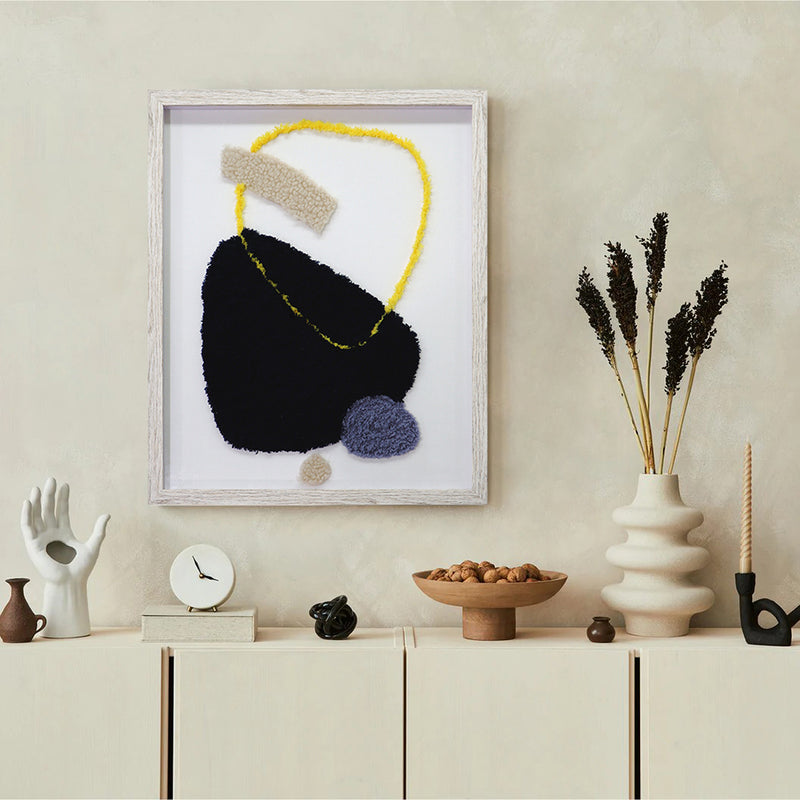 Soothing Colors: A smattering of yellow, blues, black, and creams elicits a peaceful, serene mood.