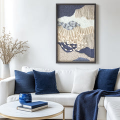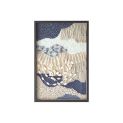 This wall art is made of various kinds of coral fleece set in a robust wooden frame. It is modern abstract style, with a well-matched blend of colors like blue,white and beige. The surface is soft and plush, inviting to touch and adding to the charm of the piece. Overall, it is contemporary and chic.