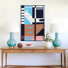 This is perfect for modern interior design, art galleries, or any creative space that wants to bring energy and charm. Bright colors with structured patterns create a charming focal point that enlivenes the room.