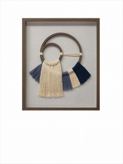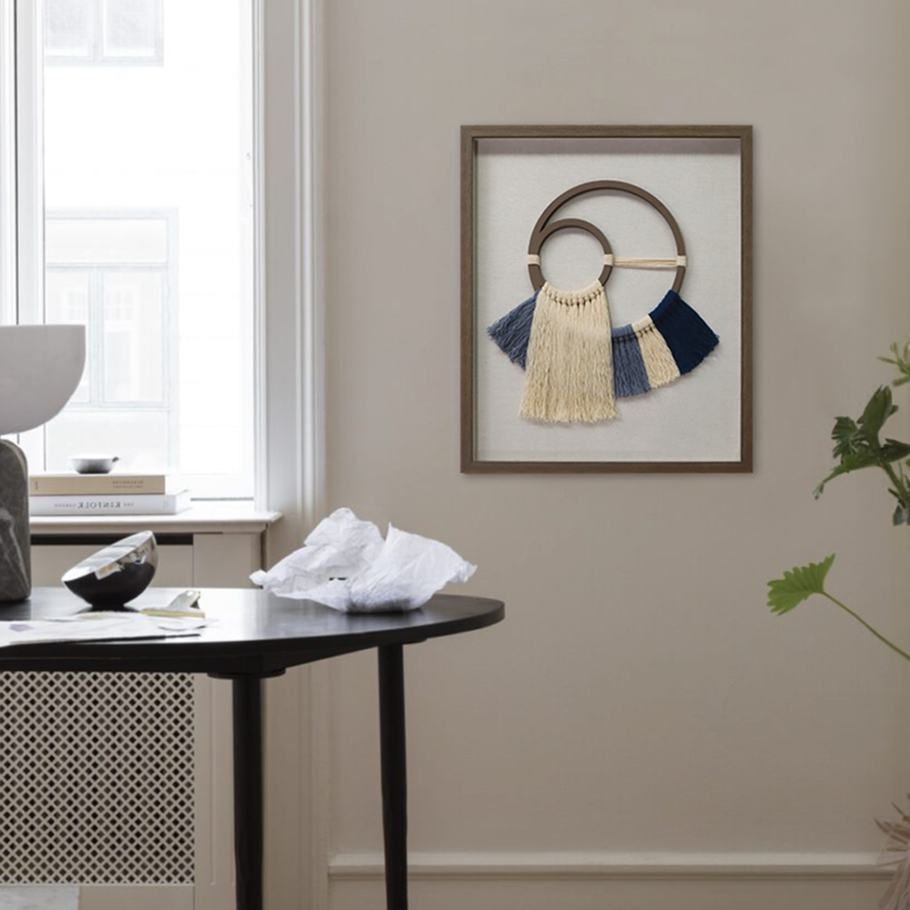 Macrame Shadow Box Wall Art Match With Blue and White Fringe