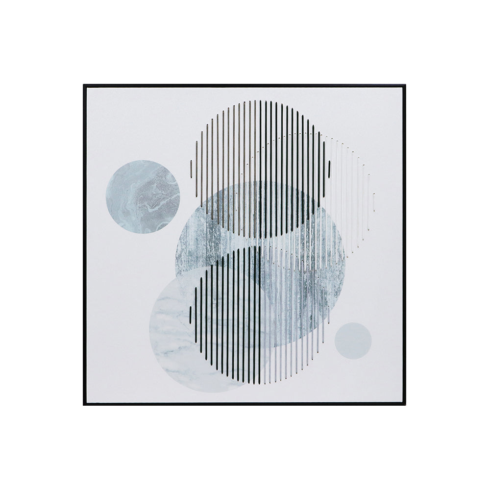 This wall art combines modern geometric design with 3D cotton lines. Made of high-quality materials, the work features multi-colored geometric patterns interspersed with 3D cotton lines. The theme is a 3D hanging picture created by multiple geometric figures. It has a smooth surface texture that exudes a very modern feel and aspect. It soothes and reflects quite a bit of modern interior sophistication.