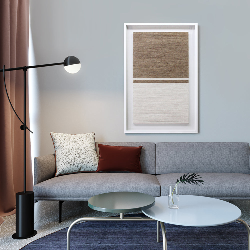 The artwork has a modern and three-dimensional feel. You can see that the brown and beige color blocks are made of strips of hand-woven cotton thread, with layers of color to create color gradients, giving a modern and attractive look.