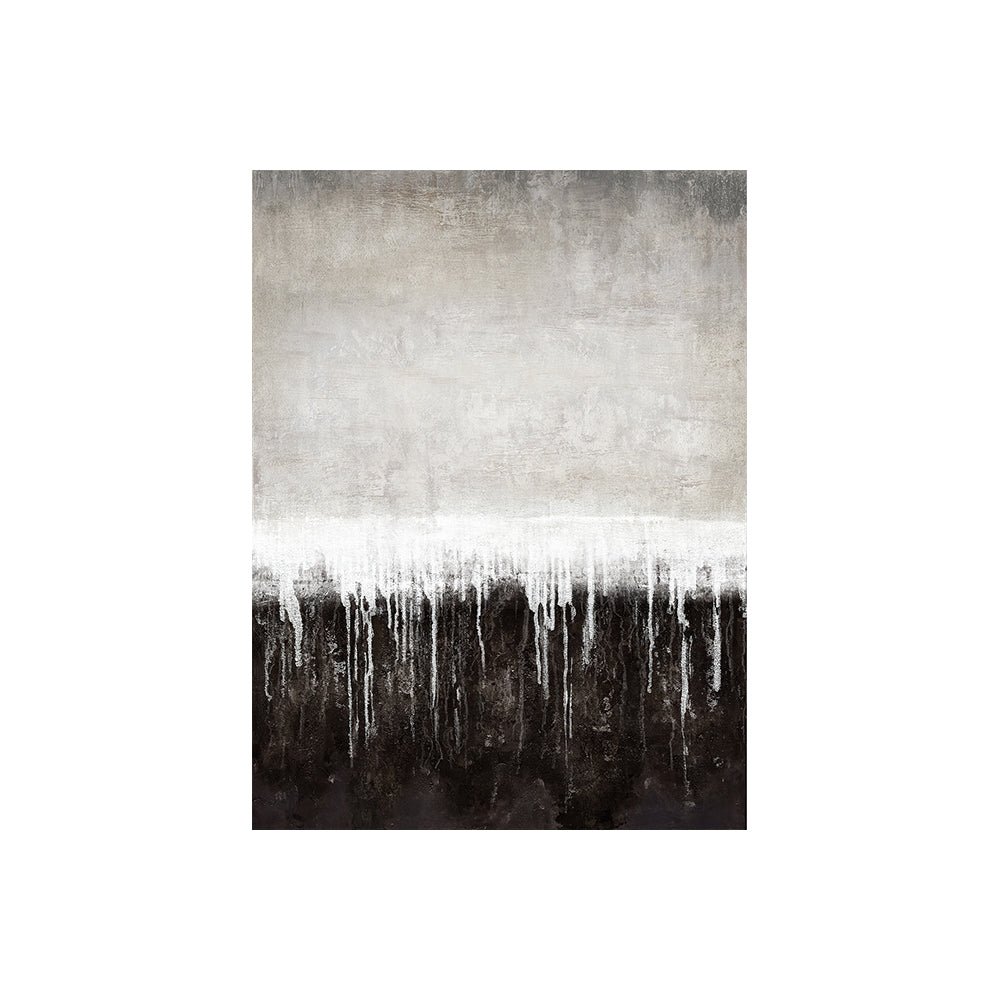 This abstract oil painting mainly focuses on geometric shapes and block surfaces, black, white and gray tones, clearly highlighting these formal structures and enhancing the visual impact of the picture. The color of black, white and gray abandons the complexity of color and returns to the most basic contrast of light and dark, giving people a minimalist and pure visual experience. Black symbolizes power or unknown, white symbolizes purity or emptiness, and gray represents ambiguity and transition. These colors can be given multiple symbolic meanings in abstract paintings.