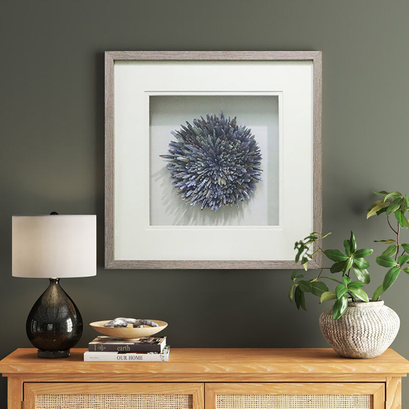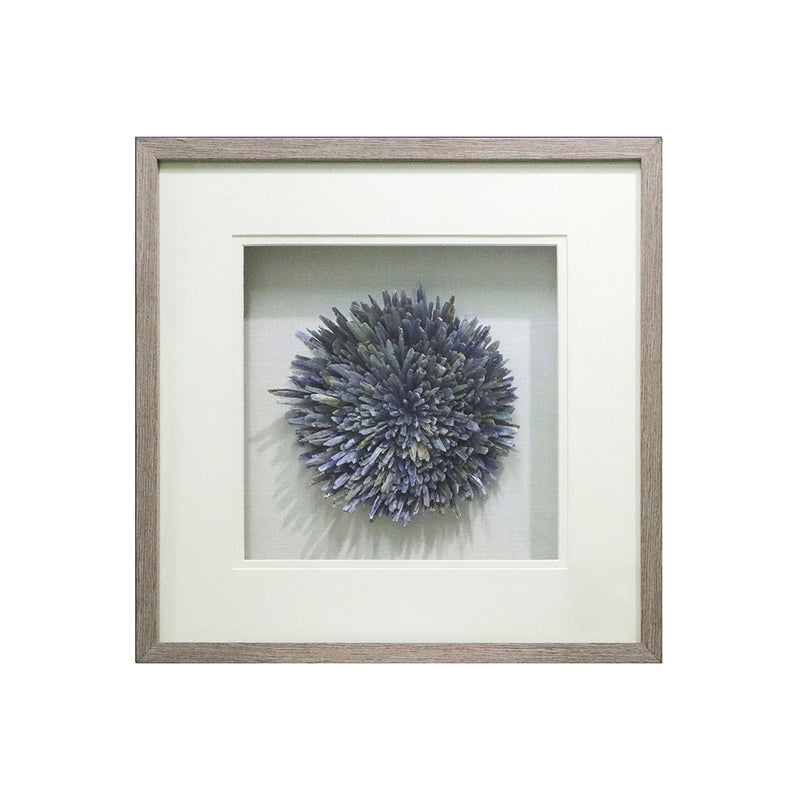 Give a touch of nature to your interior with the sophisticated Textured Ore Wall Art, an intriguing blend of organic materials in modern design. The 24" x 24" (60 x 60 cm) striking circular arrangement of natural ore in calming shades of blue and gray, encased in a premium wood-effect frame with a layered display, brings much-needed texture, depth, and sophistication to your walls.